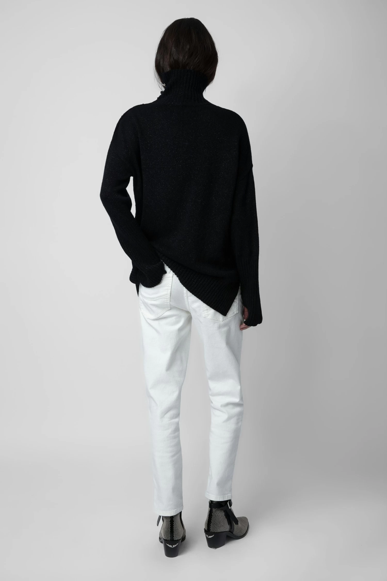 This soft and luxurious cashmere sweater has a ribbed high collar and is adorned with buttons on the shoulder. – Zadig&Voltaire women’s knit sweater – Long sleeves – High collar – Jewel buttons – Ribbed collar and cuffs Model is 177 cm / 5′ 9″ and is wearing a size 36