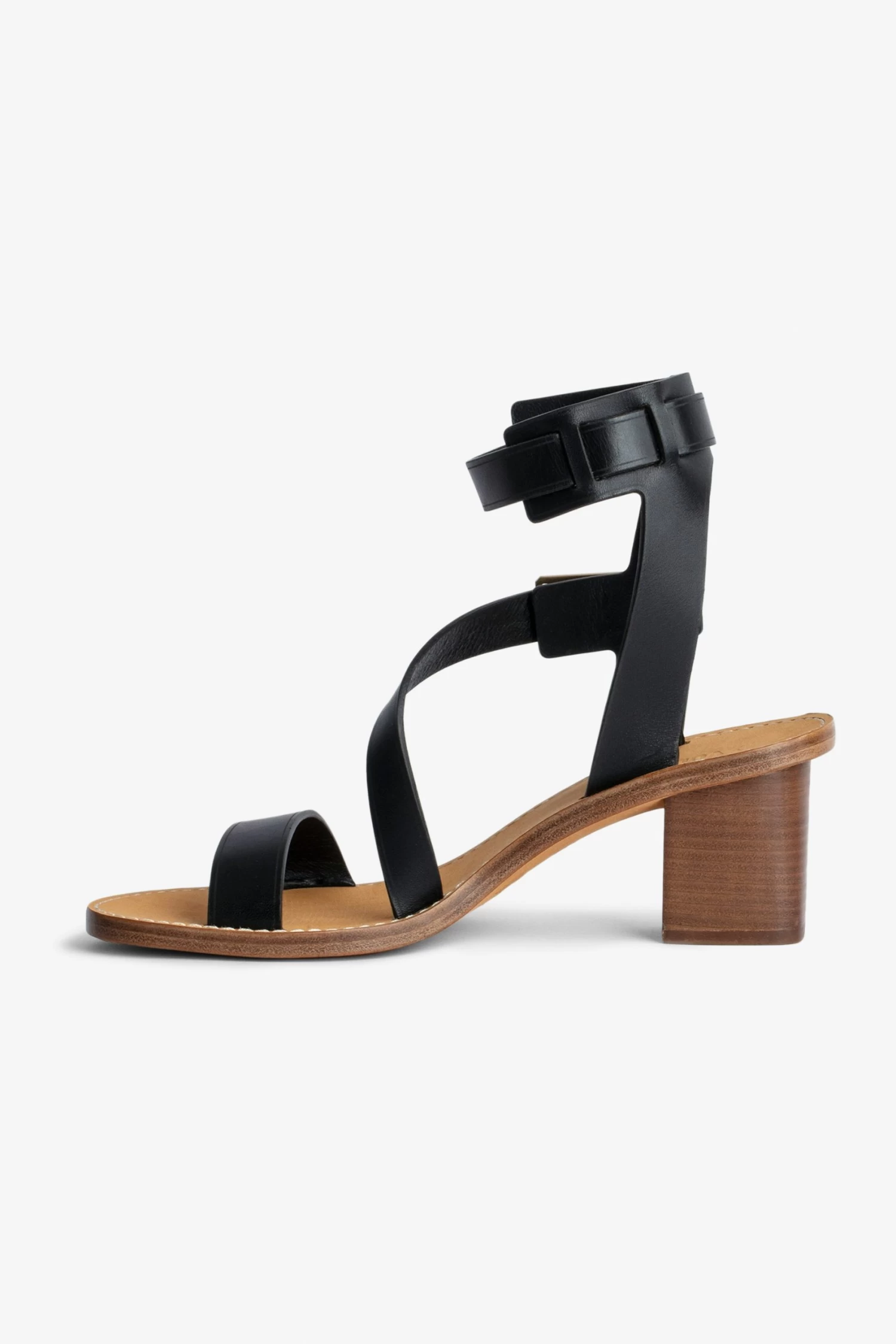 Resolutely rock and casual, these leather sandals feature adjustable straps and C-shaped buckles designed by Cecilia Bönström. This season’s must-haves are gathered at the ankles. r r – Zadig&Voltaire women’s smooth black leather sandals – Adjustable straps – Gold metal C-shaped buckles – Gathered at the ankles r – Contrasting heels – Heel height: 5.7 cm – Made in Portugal The Leather Working Group/LWG is a membership organization comprised of brands, suppliers, leather manufacturers and other stakeholders within the leather manufacturing industry. The group has developed an auditing program which certifies leather manufacturing facilities based on their environmental compliance and performance capabilities