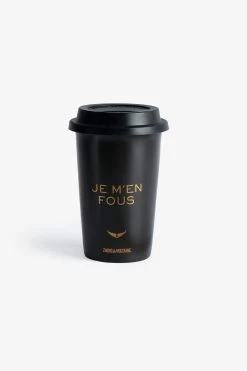 The Cup of Joy Mug is part of the VOLTAIRE VICE capsule. Zadig&Voltaire is experimenting with a new creative space, where freedom is the watchword. The brand is adding its signature to everyday objects that are both practical and decorative, where design is as important as purpose. – Black ceramic mug – Lid – “Je m’en fous” and “Cup of joy” slogans, and gold wings motif and Zadig&Voltaire signature – 400 ML