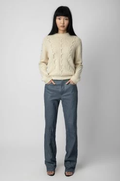 – Women’s Kate Wallet bag in Storm blue glitter denim – Black cotton lining – Metal ring with “Kate Loves Zadig&Voltaire” engraving, studded trim and fringed trim – Removable metal chain – Flap with magnetic closure – Two compartments separated by a zip pocket and 2 card slots – Carry by hand, over the shoulder or across the body using the leather loop – Made in Italy