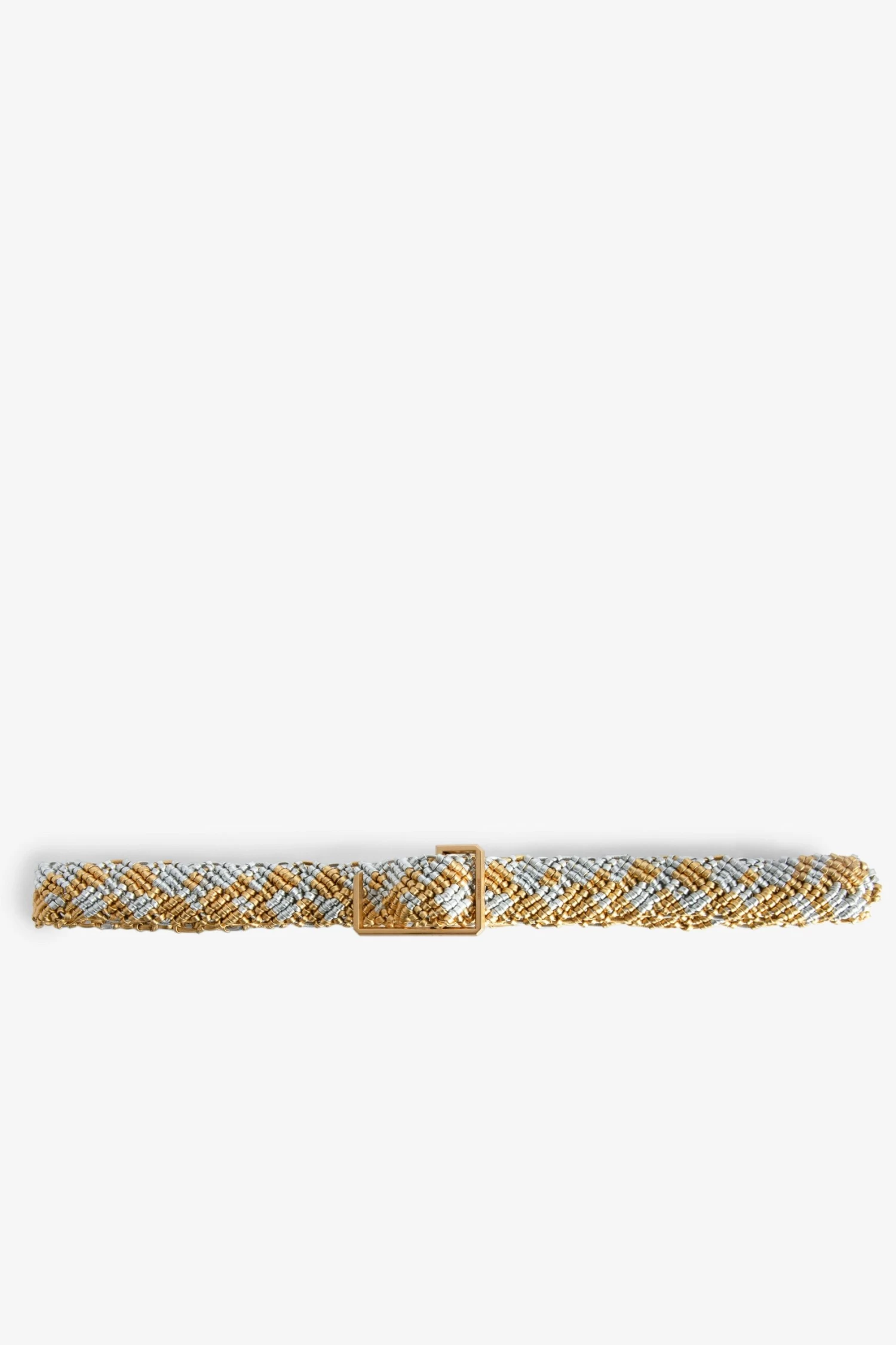 – Women’s adjustable gold and silver braided crinkled leather belt – Gold-tone fine metal C buckle and panels – Width: 3.5 cm – Made in India