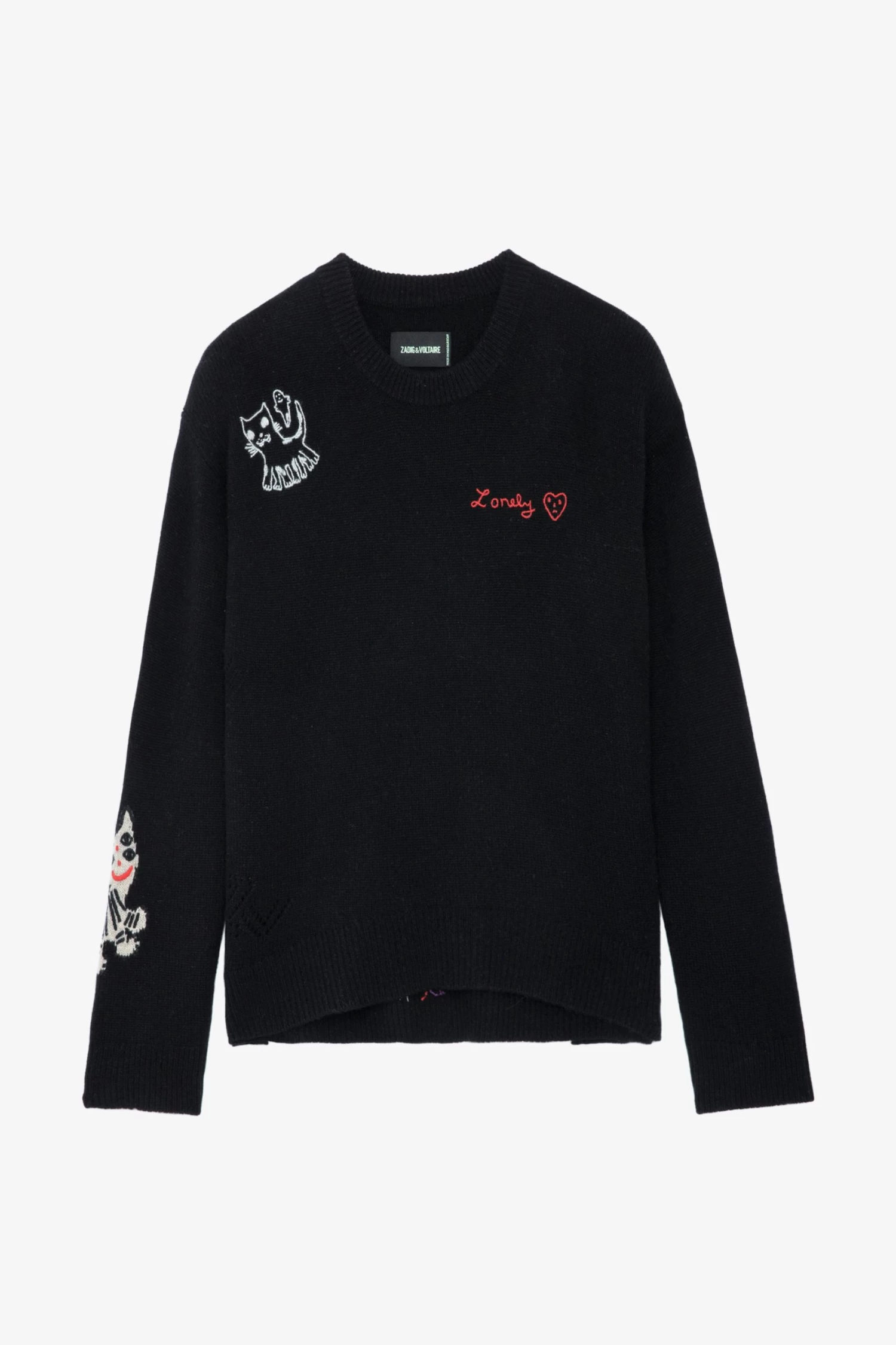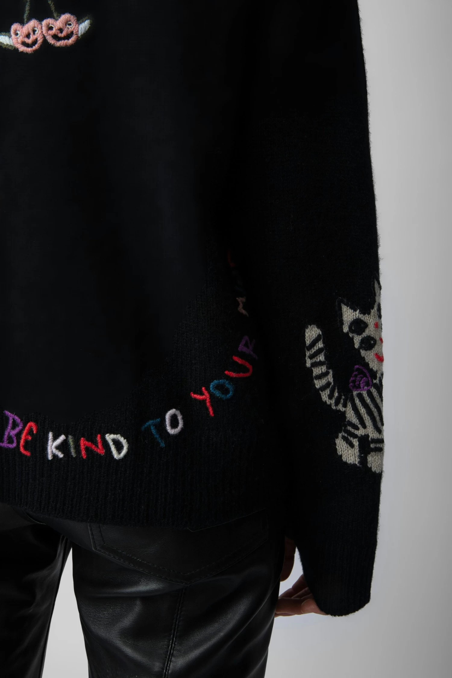Customized details designed by Humberto Cruz, an artist and illustrator from San Diego. Influenced by pop culture, fashion and colors, he describes his work as spontaneous and quirky. – Women’s black cashmere sweater – All over embroidered Humberto Cruz motifs – Round neck – Long sleeves and ribbed trimModel is 174 cm / 5′ 8″ and is wearing a size S The cashmere for this product is produced according to The Good Cashmere Standard® by AbTF. The standard ensures the welfare of the cashmere goats, protects natural resources and supports the local farmers that produce it.