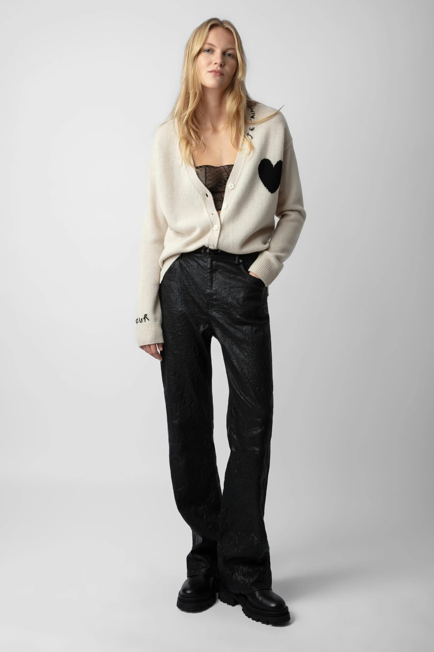 – Women’s Judo ecru cashmere cardigan – Heart motifs on the chest, intarsia jacquard “Je t’aime” and “Amour” slogans and pointelle ZV signature – V neckline and button fastening – Long sleeves, ribbed collar, hem and cuffs Model is 180 cm / 5′ 10″ and is wearing a size S The cashmere for this product is produced according to The Good Cashmere Standard® by AbTF. The standard ensures the welfare of the cashmere goats, protects natural resources and supports the local farmers that produce it.