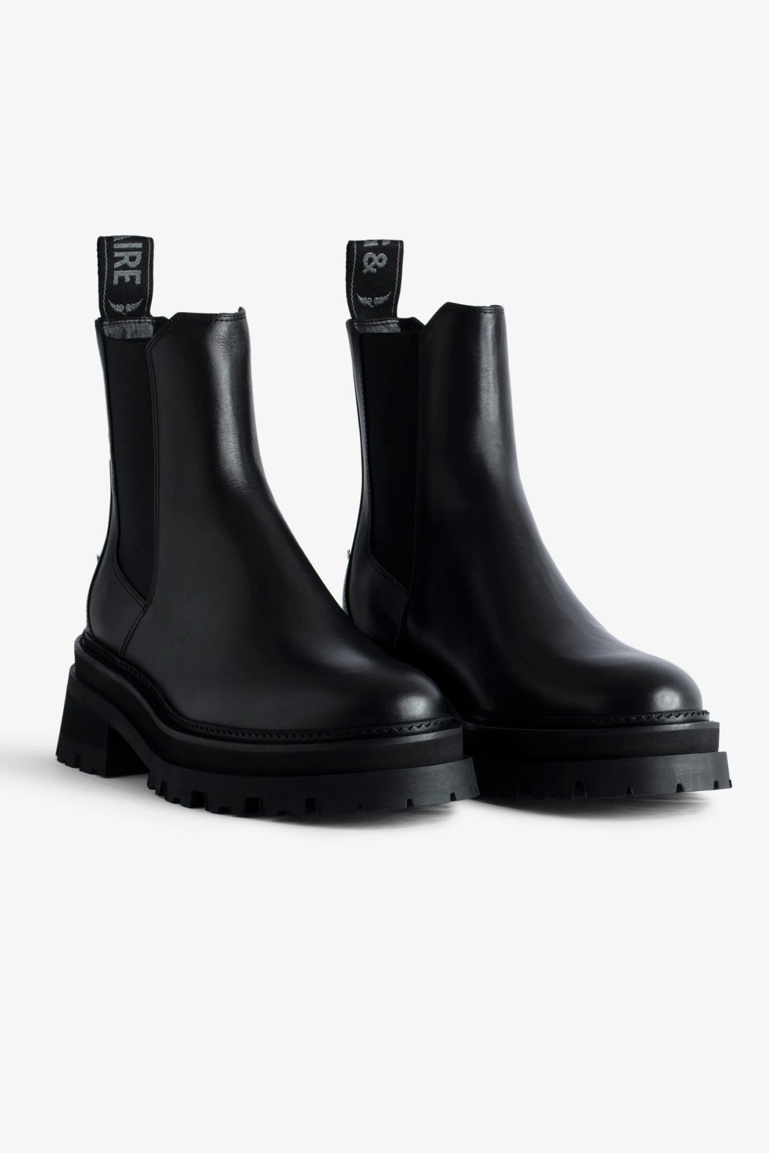 – Women’s black semi-patent smooth leather Chelsea boots – Voltaire branded back tab and elasticated sides – Metal wings charm on back – Cleated sole – Heel height: 7 cm – Made in Portugal The Leather Working Group/LWG is a membership organization comprised of brands, suppliers, leather manufacturers and other stakeholders within the leather manufacturing industry. The group has developed an auditing program which certifies leather manufacturing facilities based on their environmental compliance and performance capabilities