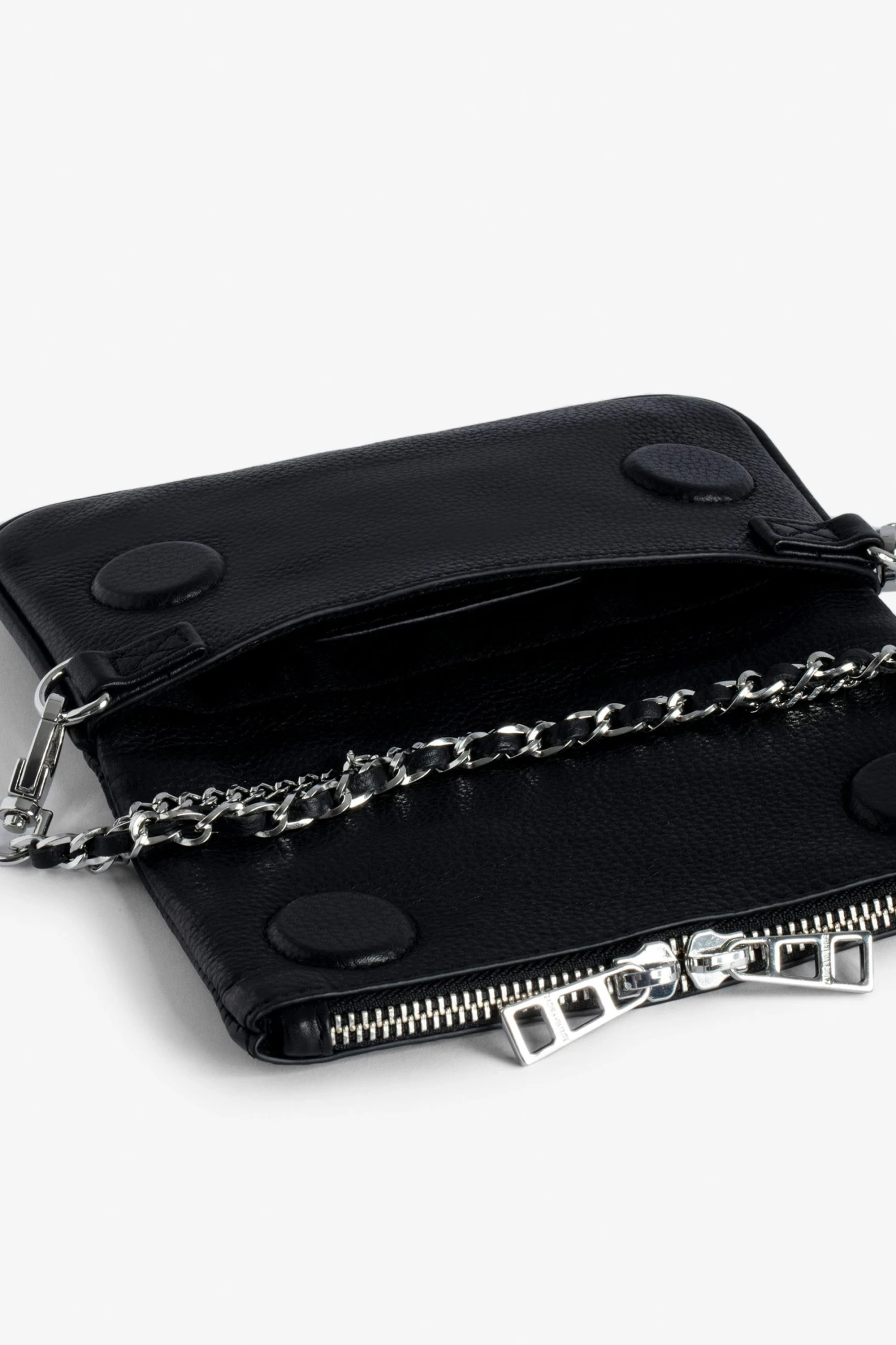 – Women’s Rock Nano clutch in black grained leather – Dotted Swiss studs and black cotton lining – Two removable chains, one interwoven with leather and the other metal – Wings charm – Flap with zip and magnetic closure – Zipped back and inside pockets – Carry by hand, over the shoulder or across the body – Holds a mobile phone up to 6.1 inches in size (for example: can contain an iPhone 12u002F13u002F14)The Leather Working Group/LWG is a membership organization comprised of brands, suppliers, leather manufacturers and other stakeholders within the leather manufacturing industry. The group has developed an auditing program which certifies leather manufacturing facilities based on their environmental compliance and performance capabilities