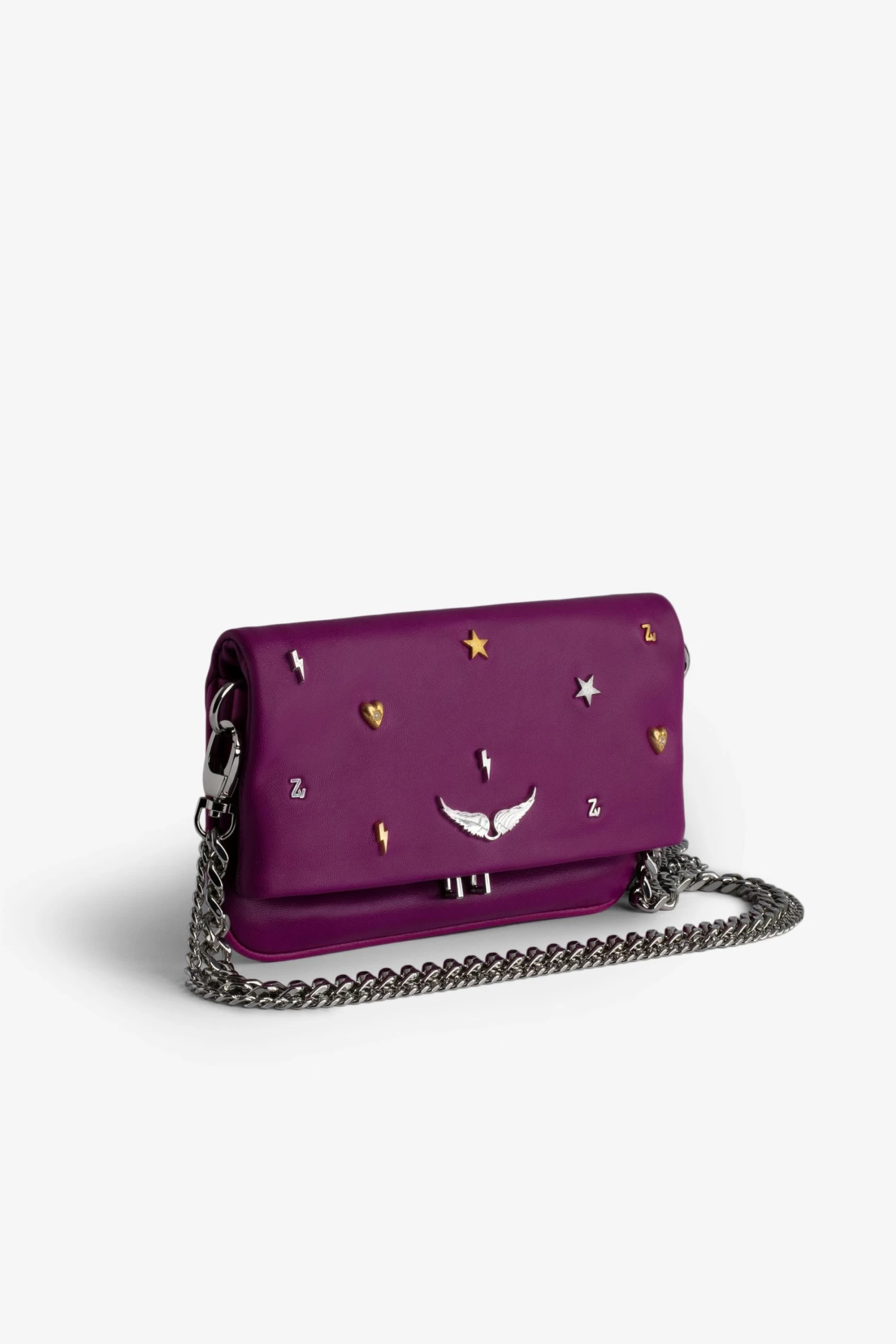– Women’s Rock Nano clutch in purple grained leather – Cotton lining – Two removable chains straps – Wings charm – All over charms – Flap with zip and magnetic closure – Zipped back and inside pockets – Carry by hand, over the shoulder or across the body – Holds a mobile phone up to 6.1 inches in size (for example: can contain an iPhone 12u002F13u002F14)The Leather Working Group/LWG is a membership organization comprised of brands, suppliers, leather manufacturers and other stakeholders within the leather manufacturing industry. The group has developed an auditing program which certifies leather manufacturing facilities based on their environmental compliance and performance capabilities