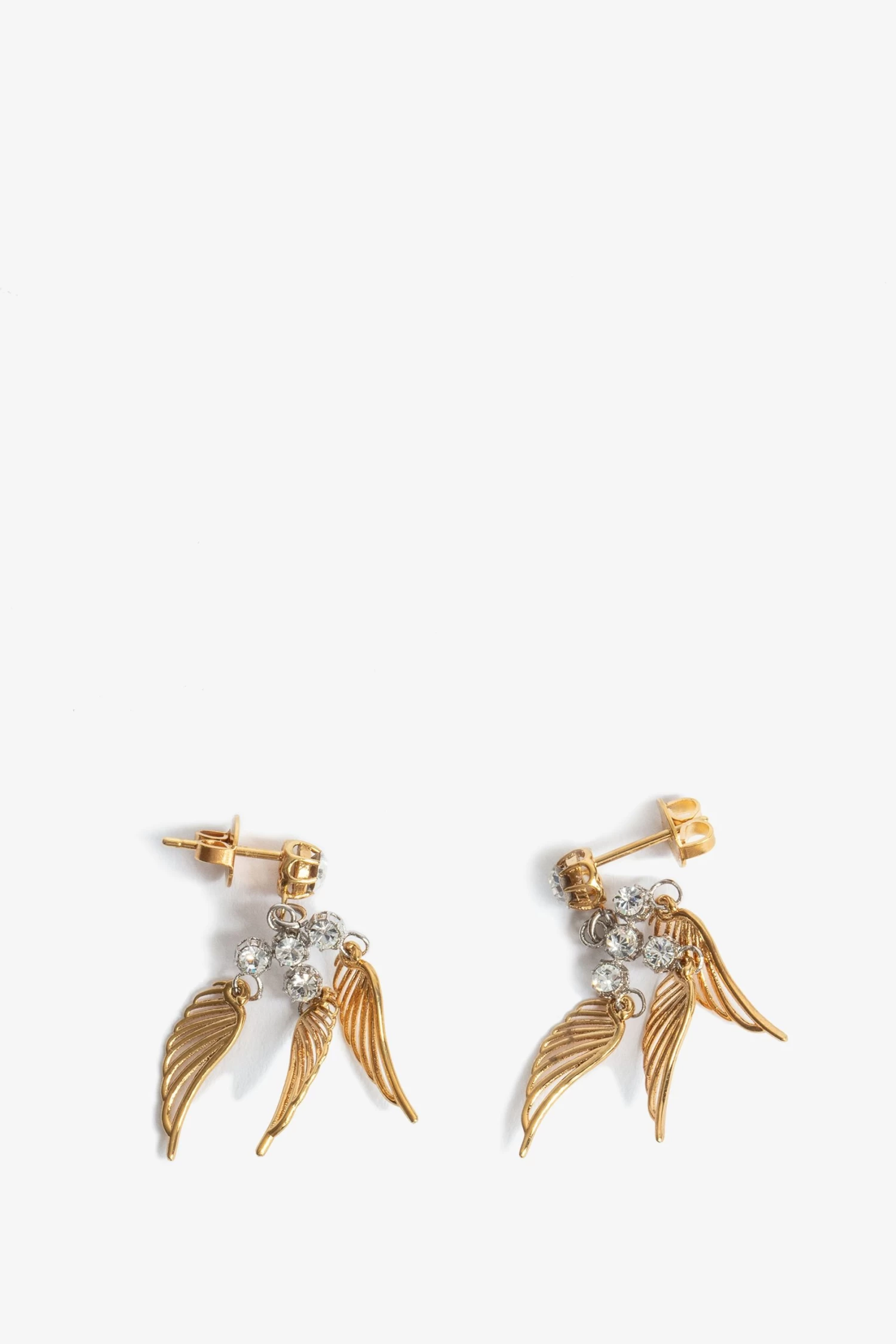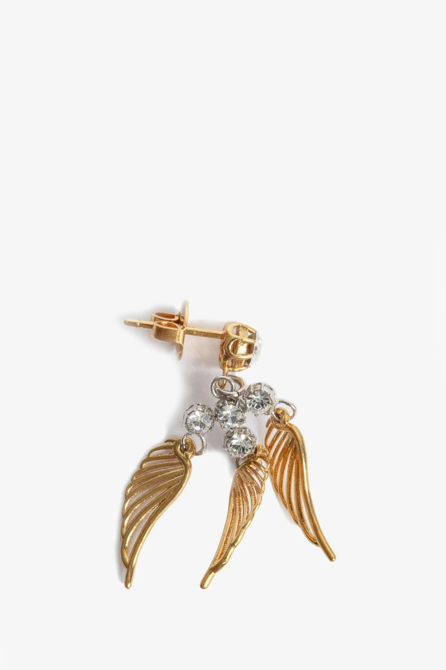 Gold-tone brass earrings with mobile crystal-embellished wings. – Zadig&Voltaire women’s gold-tone brass earrings -Made from 80% recycled brass – Crystal-embellished wings – For pierced ears – Butterfly backs -Height : 1.4 in -Product code: OWJW00526_SHINY GOLD