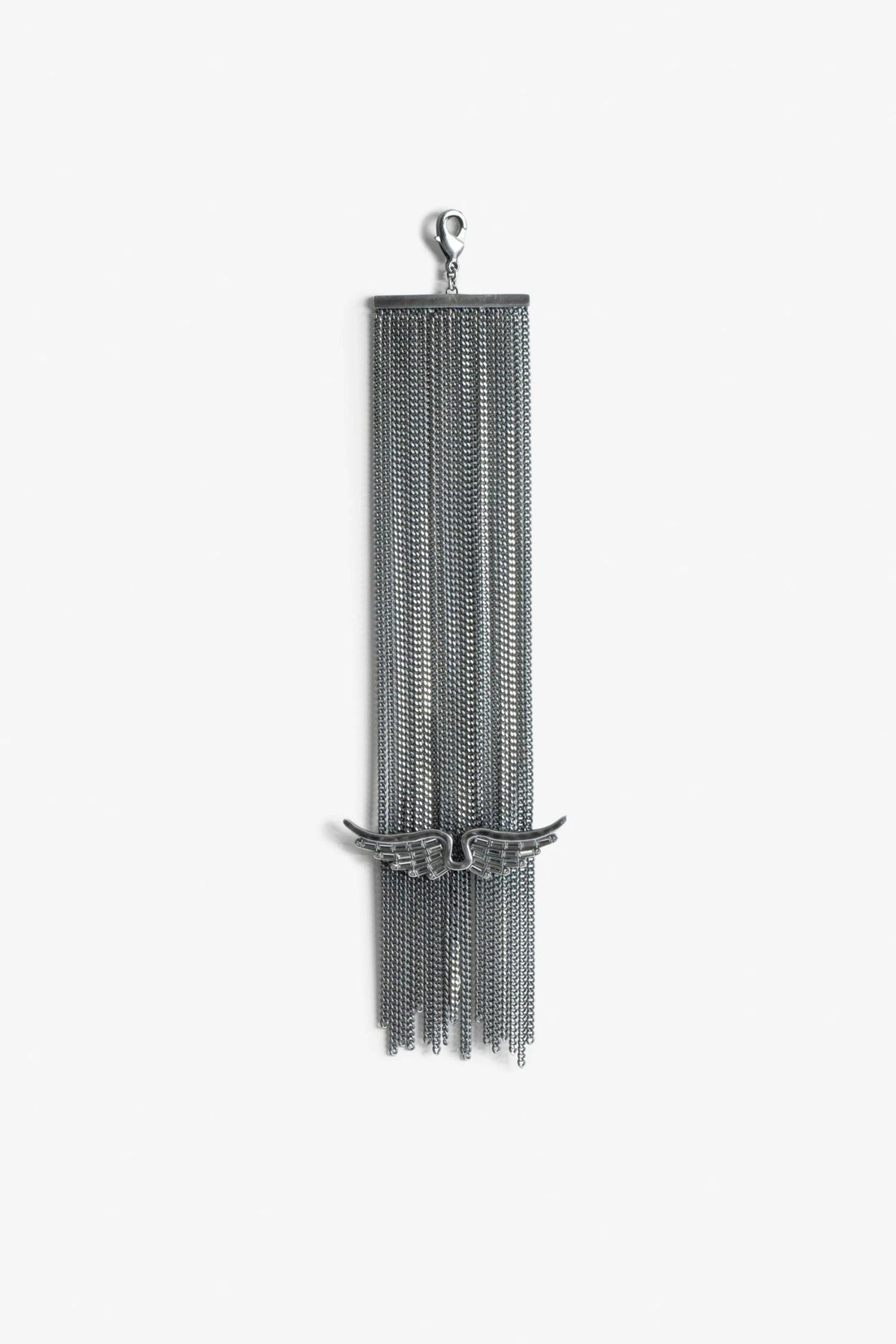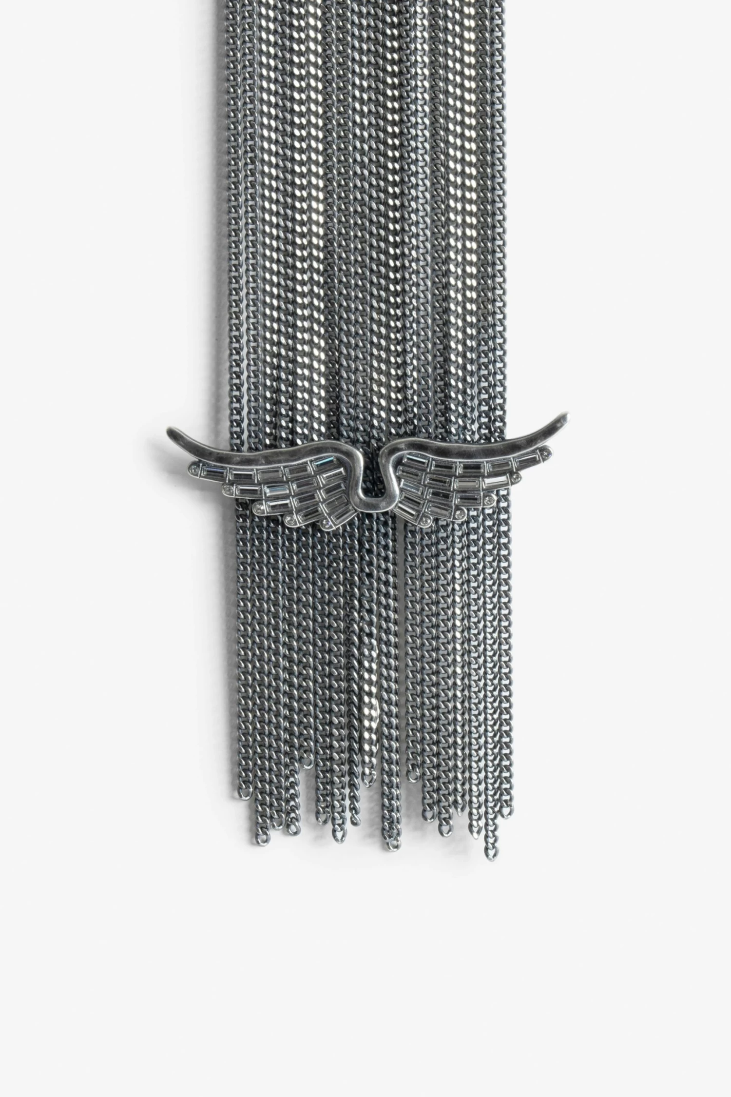 Silver-tone brass cuff bracelet with multiple chains embellished with wings.