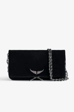 – Women’s iconic Rock black suede clutch – Removable double interwoven leather and metal chain strap – Flap with zip and magnetic closure – Small zip pocket on the back and inside patch pocket – Wings charm with red diamanté embellishment – Carry by hand, over the shoulder or across the body The Leather Working Group/LWG is a membership organization comprised of brands, suppliers, leather manufacturers and other stakeholders within the leather manufacturing industry. The group has developed an auditing program which certifies leather manufacturing facilities based on their environmental compliance and performance capabilities