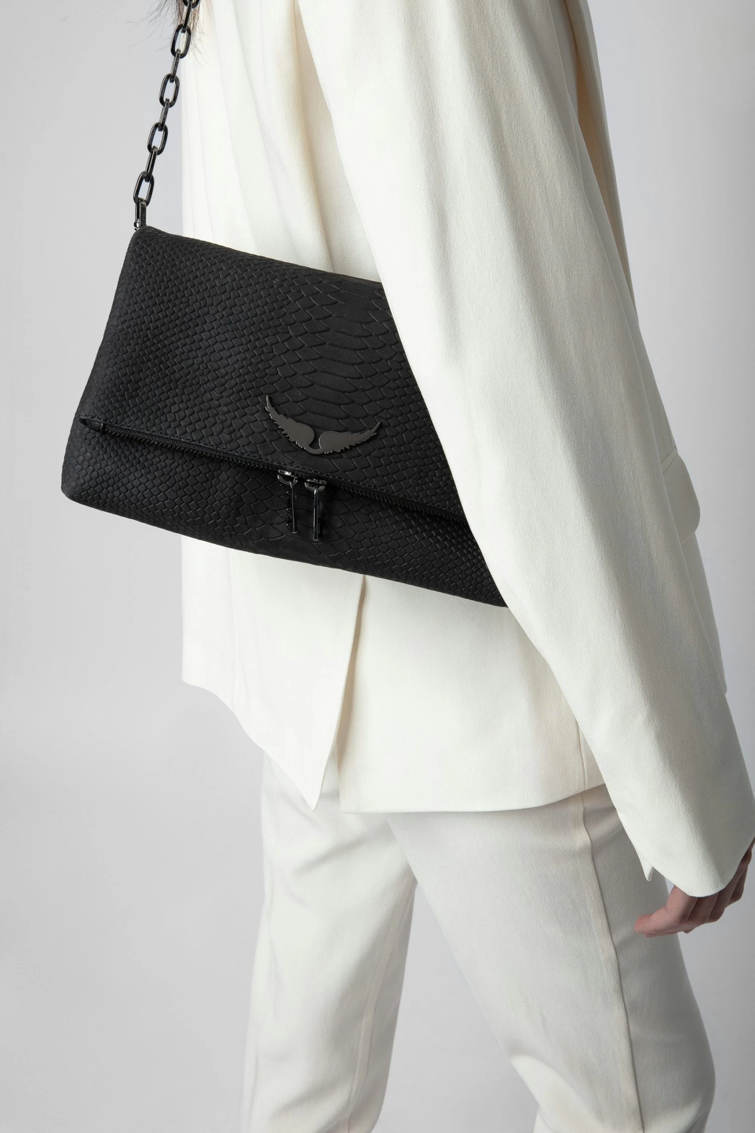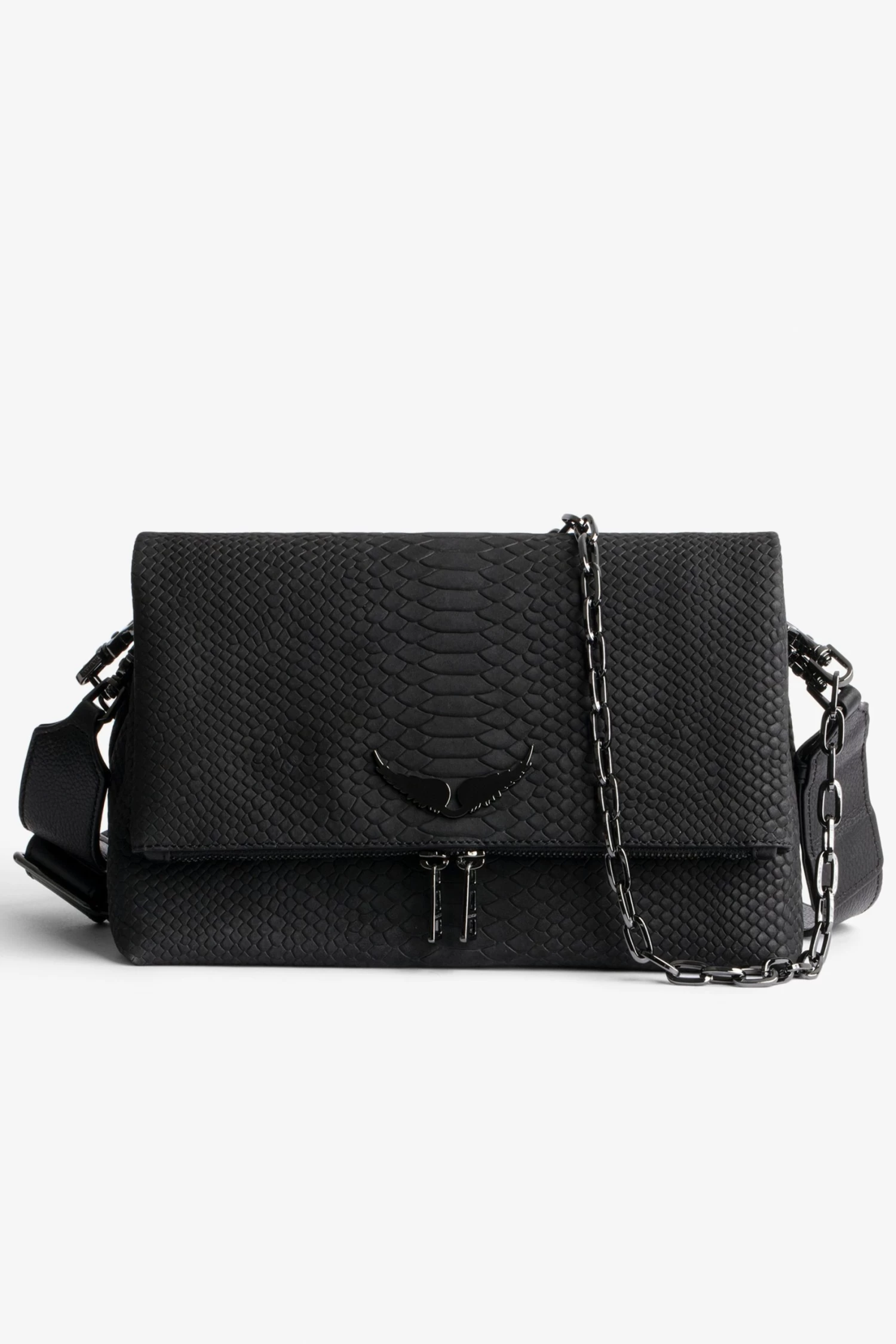 The iconic Rocky can be carried as a shoulder bag or clutch, as you wish. Urban with its leather strap, chic with its black metal chain, it can be carried anywhere. – Women’s Zadig&Voltaire Rocky bag in black python-effect leather – Zip fastening – Adjustable and detachable leather strap – Detachable black metal chain – Can be carried as a shoulder or crossbody bag – Multiple compartments including a large zipped inner compartment – Back zipped pocket – Wings charm The Leather Working Group/LWG is a membership organization comprised of brands, suppliers, leather manufacturers and other stakeholders within the leather manufacturing industry. The group has developed an auditing program which certifies leather manufacturing facilities based on their environmental compliance and performance capabilities