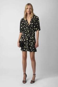 Zadig & Voltaire Rozom Soft Crinkle Roses Dress Black