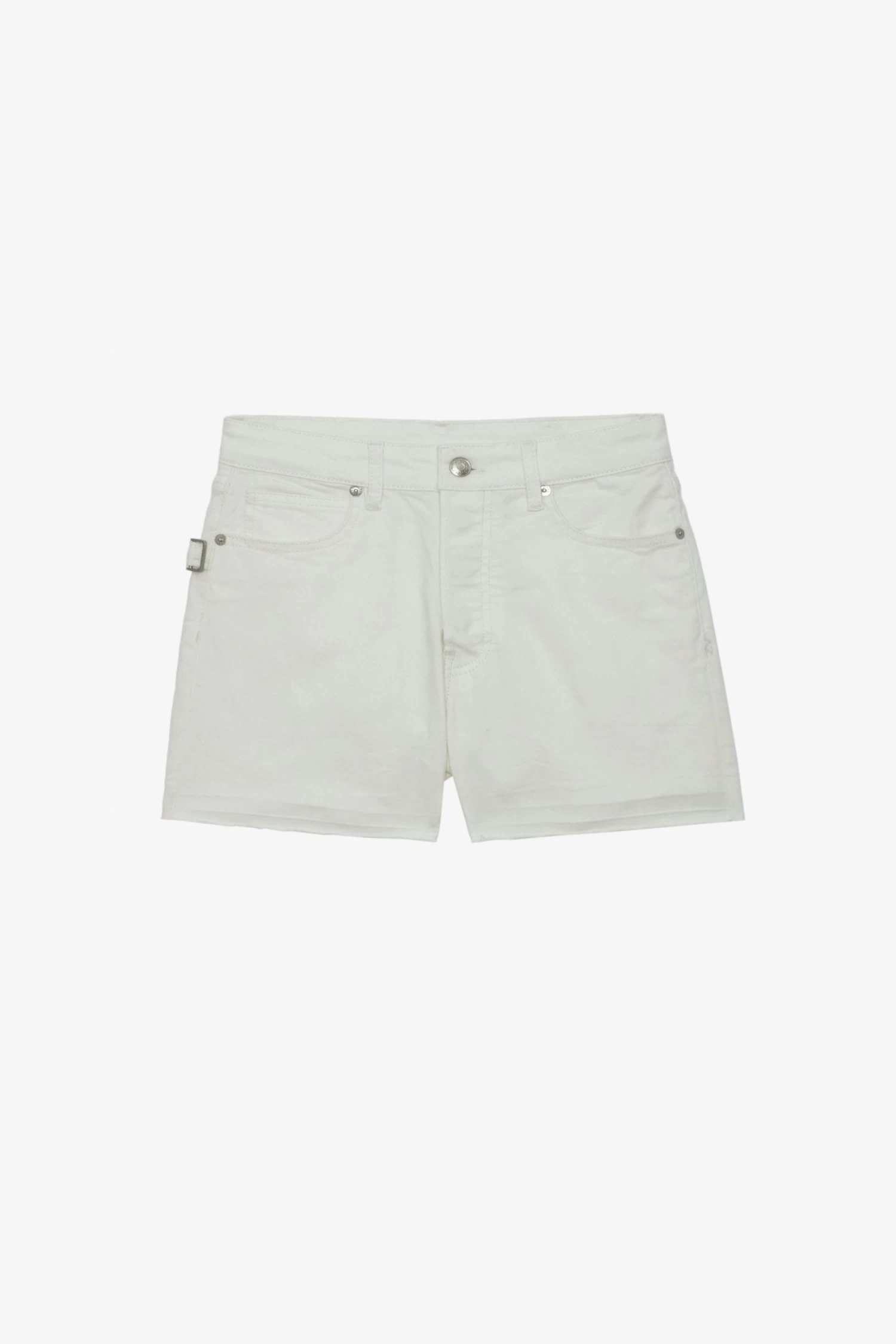 – Women’s Judo white denim shorts – High rise – Zip and button fly and belt loops at the waist – Overstitched details and raw hems – 5 pockets, metal strap and “Zadig Denim” leather jacron on the back Model is 178 cm / 5′ 10″ and is wearing a size 36**Fibers from organic farming
