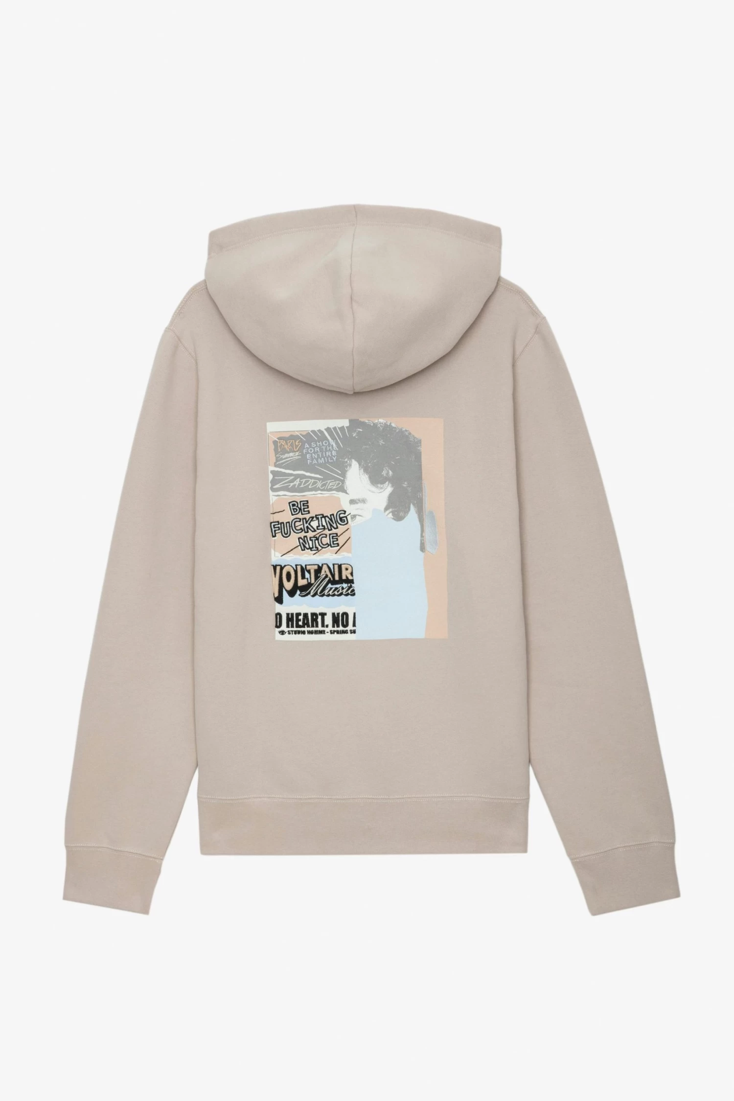 Grey hoodie with Paper Cut print on the back.