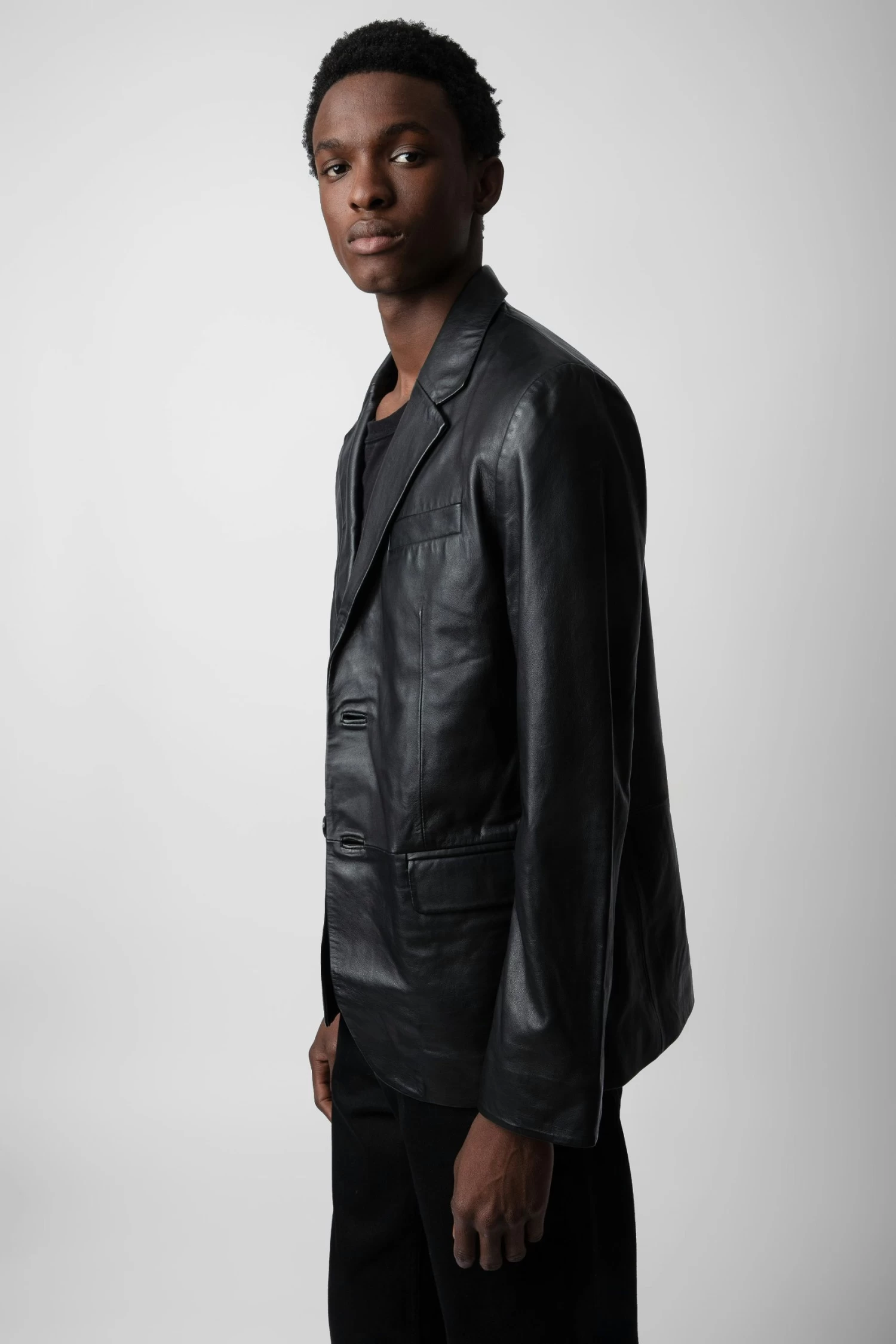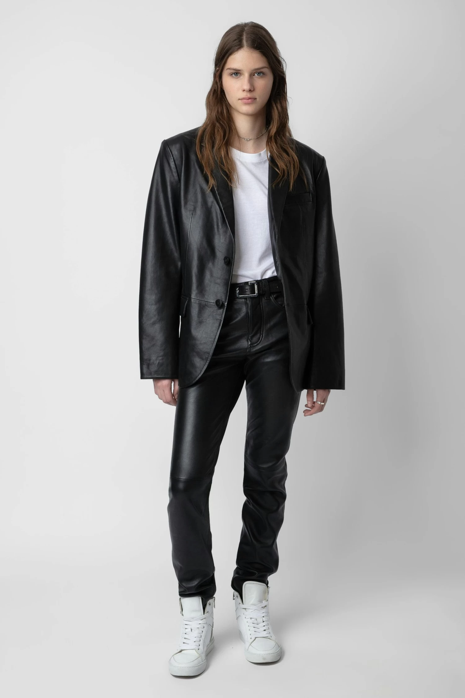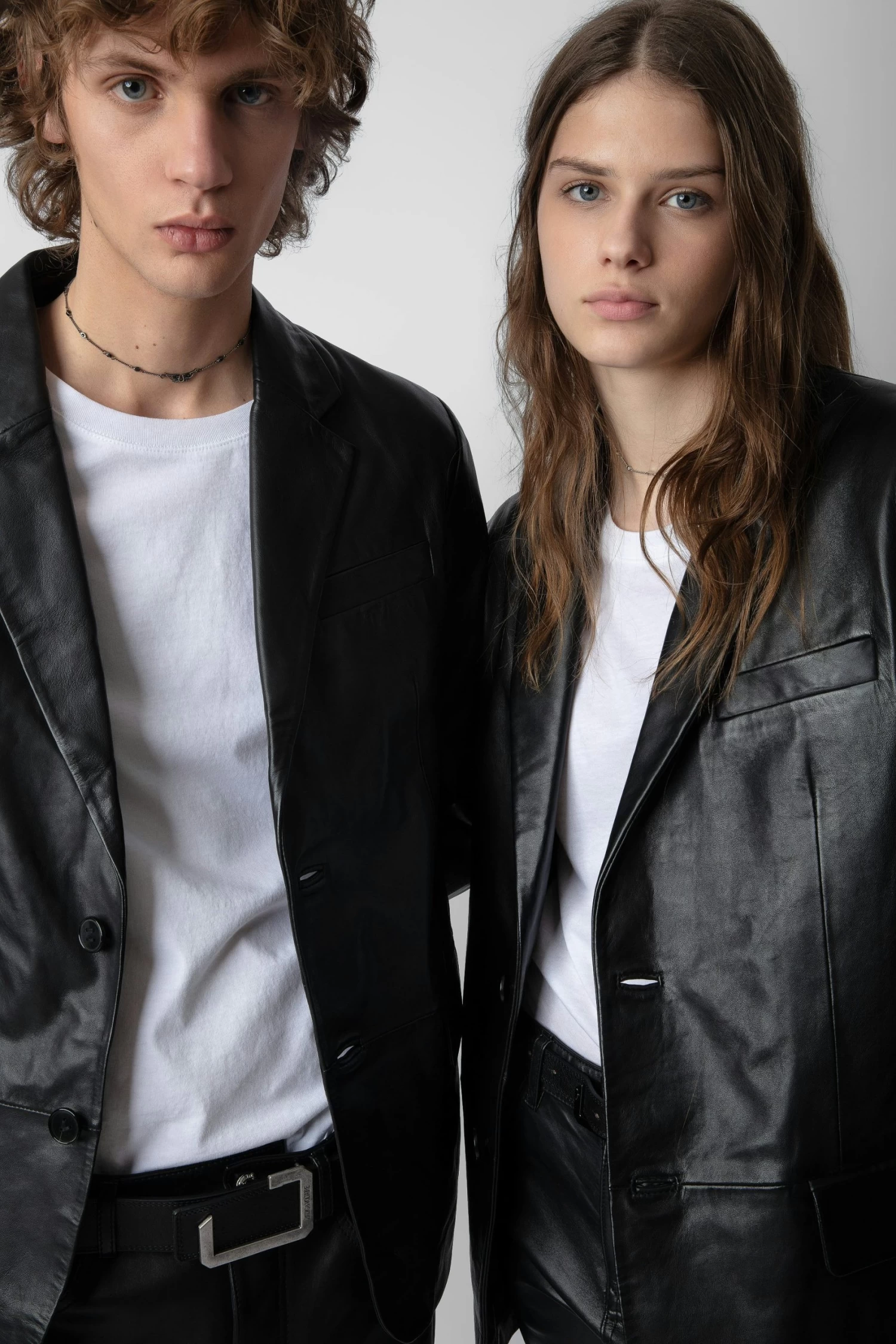The Valfried Blazer is part of the UNISEX collection. A free-spirited wardrobe by Zadig&Voltaire, the UNISEX collection represents the fusion of feminine and masculine features. – Unisex straight-cut black leather blazer – Notched collar, 2-button fastening – 2 flap pockets and 1 piped chest pocket – Long sleeves, vent at the back Model is 188 cm / 6′ 2″ and is wearing a size MThe Leather Working Group/LWG is a membership organization comprised of brands, suppliers, leather manufacturers and other stakeholders within the leather manufacturing industry. The group has developed an auditing program which certifies leather manufacturing facilities based on their environmental compliance and performance capabilities