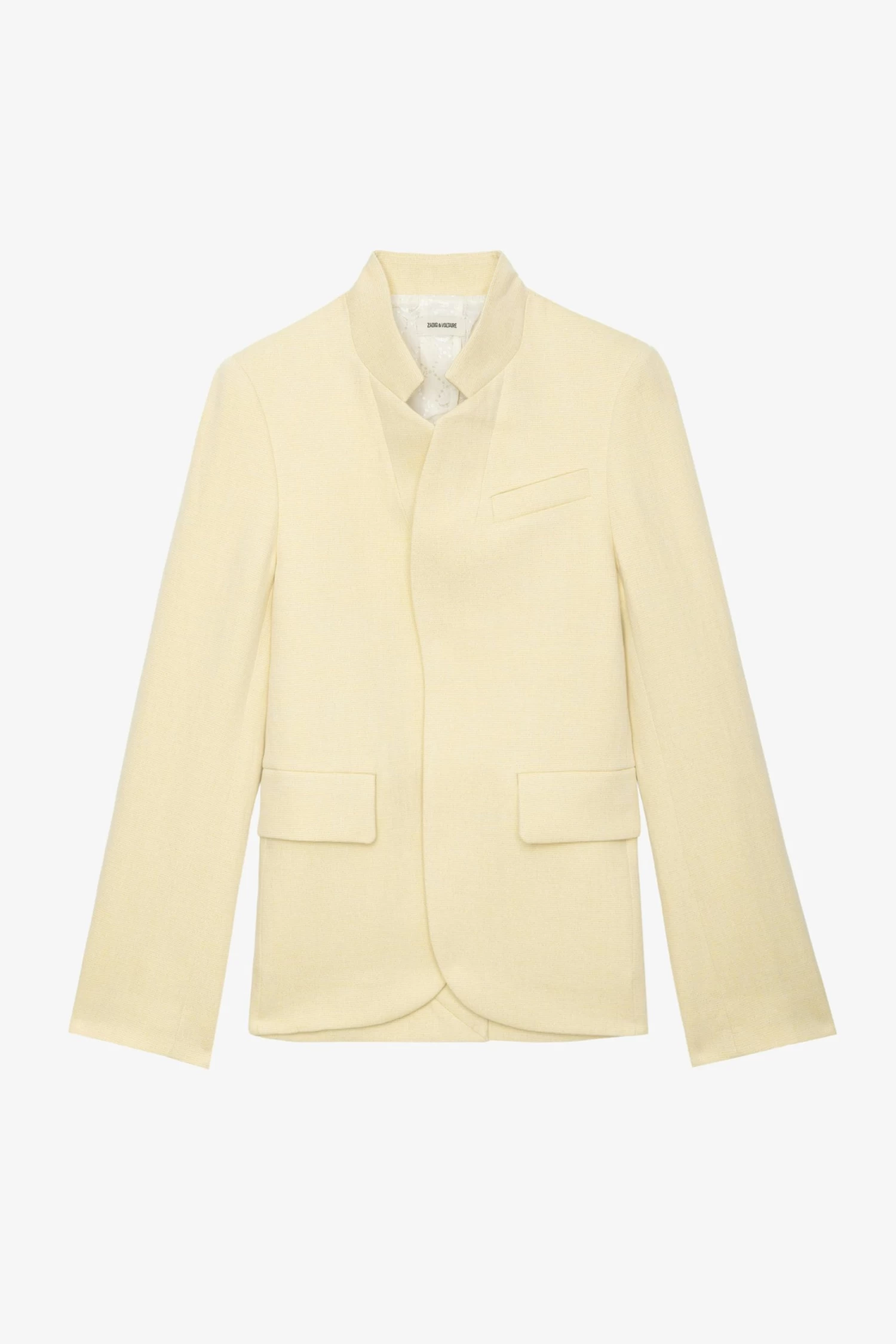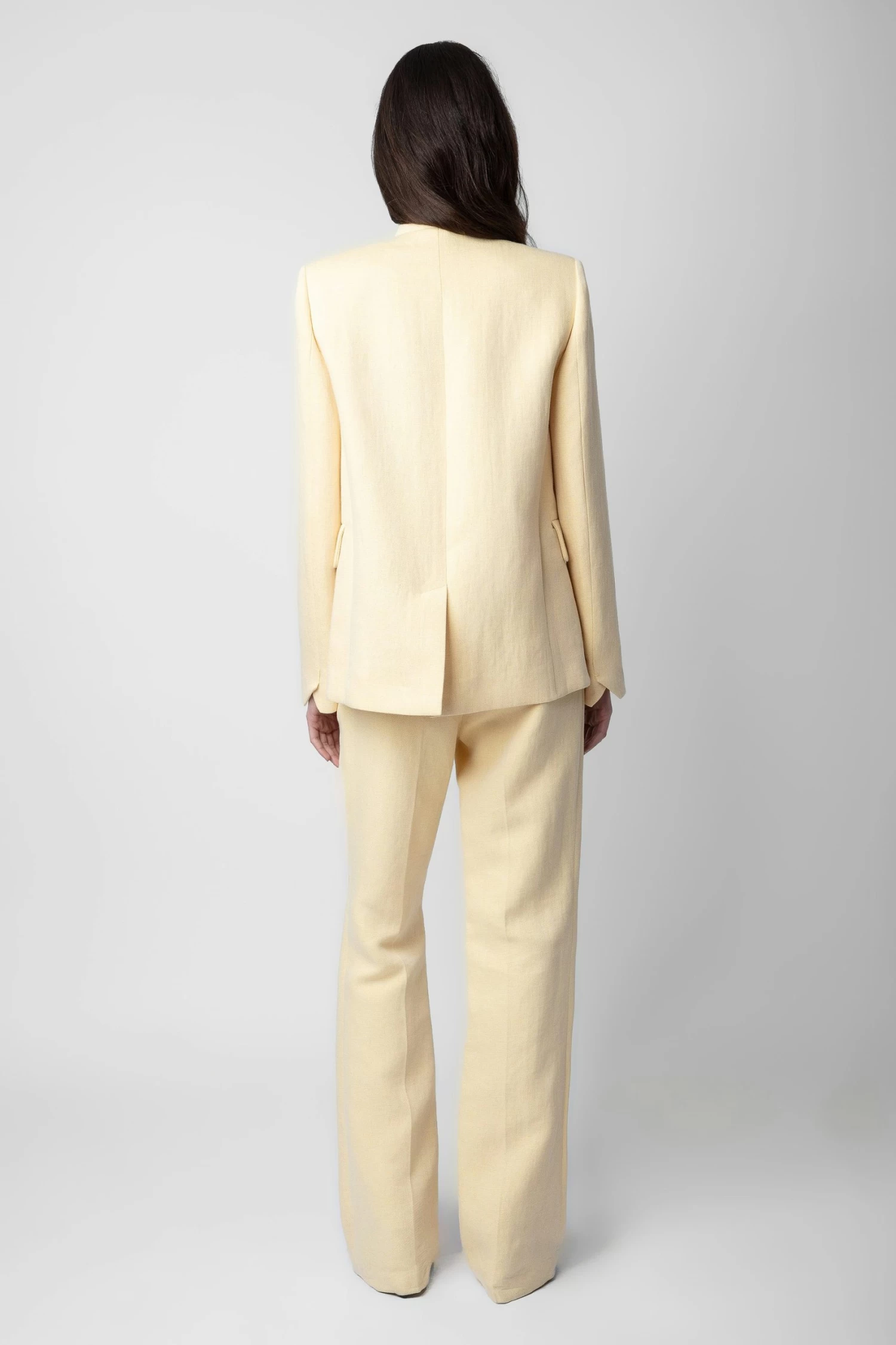 – Women’s Encre navy blue structured velvet blazer – Tailored collar – 1 piped pocket and 2 flap pockets – Long sleeves, mitred cuffs and vent at the back Model is 178 cm / 5′ 10″ and is wearing a size S