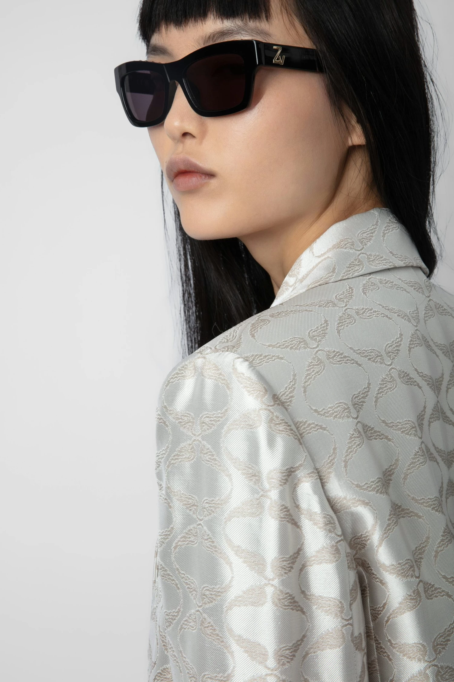 – Women’s Scout grey structured blazer – Jacquard wings – Pointed collar and shoulder pads – Double-breasted closure – 2 flap pockets and 1 piped pocket on the chest – Long sleeves, mitred buttoned cuffs and vent at the back Model is 177 cm / 5′ 9″ and is wearing a size S