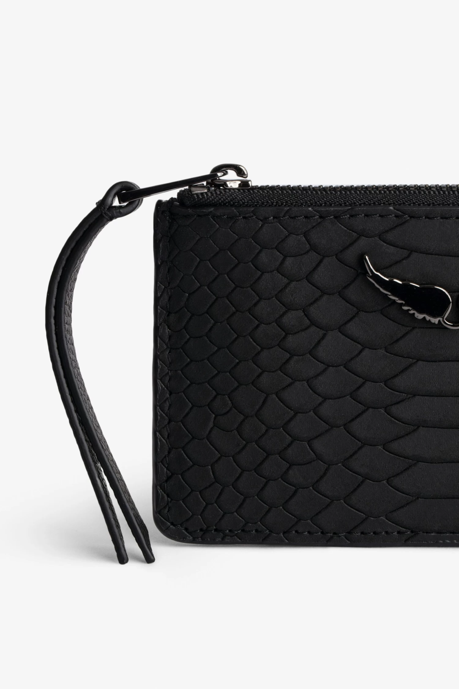 This handy card case with card slots on one side and a zipped pocket on the other can be carried with you everywhere. – Women’s Zadig&Voltaire card case in black python-effect leather – 4 card slots – One flat pocket – One zipped pocket – Wings charm The Leather Working Group/LWG is a membership organization comprised of brands, suppliers, leather manufacturers and other stakeholders within the leather manufacturing industry. The group has developed an auditing program which certifies leather manufacturing facilities based on their environmental compliance and performance capabilities
