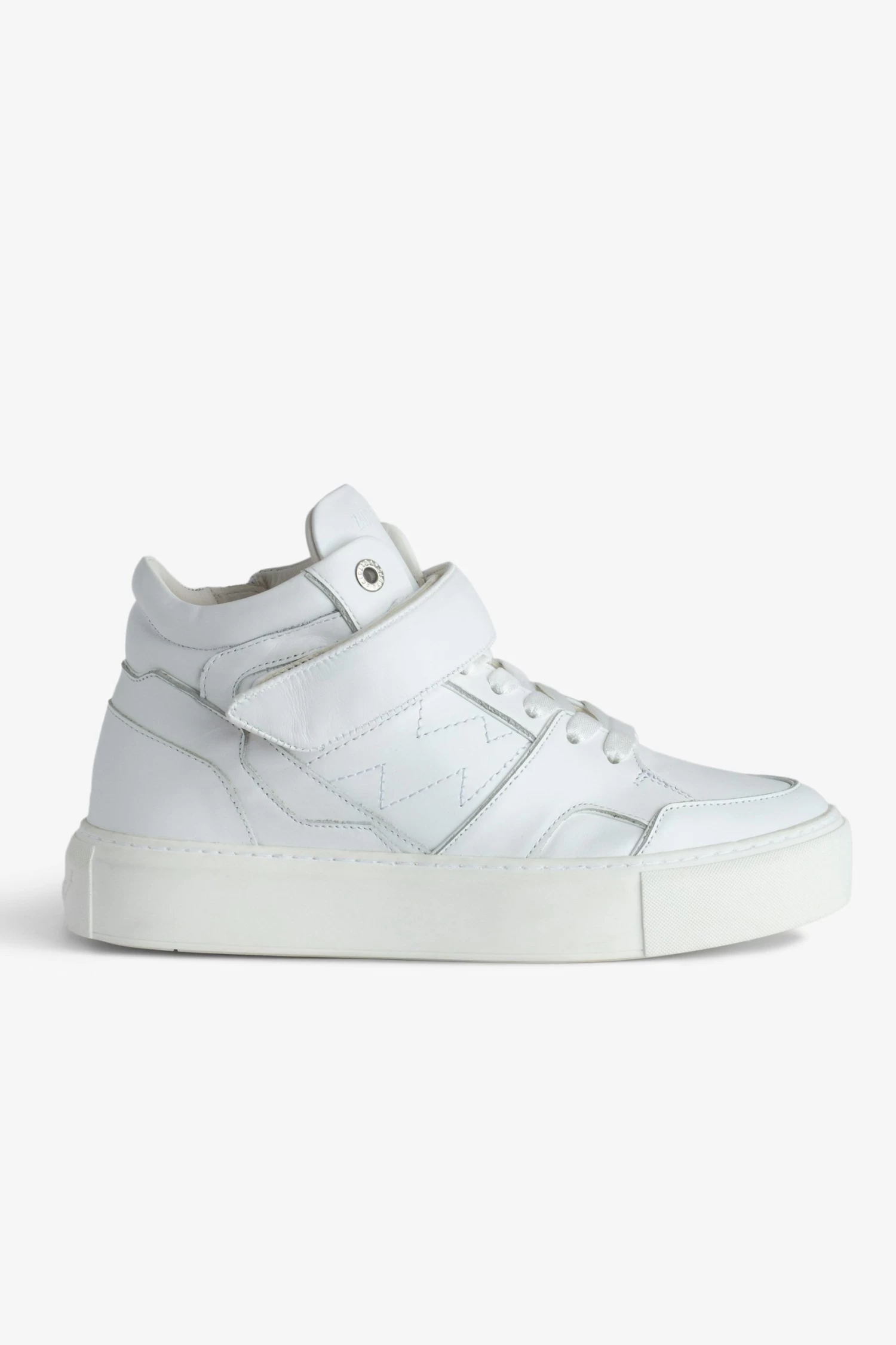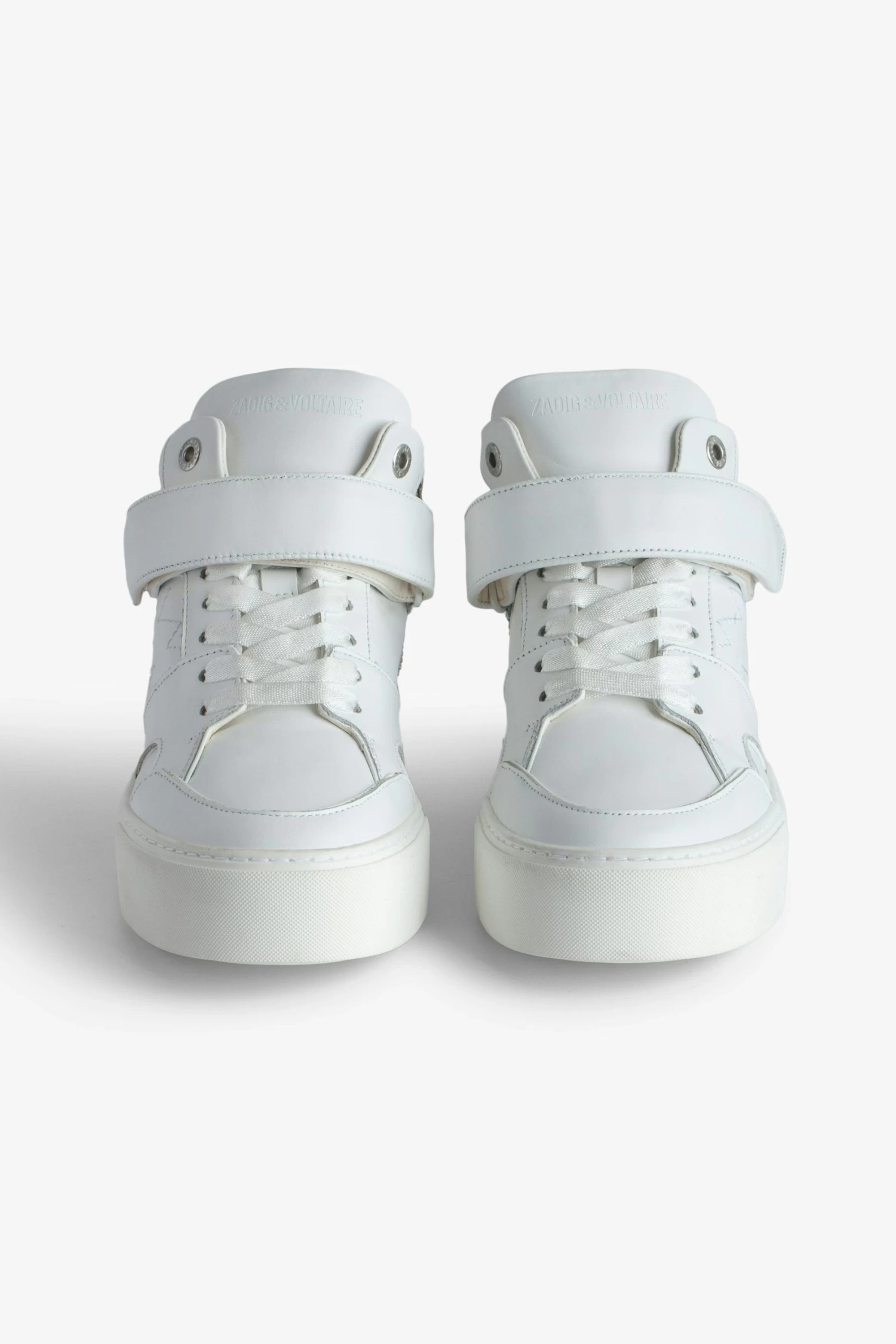 – Women’s white smooth leather mid-top trainers with laces, zip and Velcro fastening – Overstitched panels – Chunky wedge insole: 2.7 cm – Tongue and sole with Zadig&Voltaire branding – Made in Portugal The Leather Working Group/LWG is a membership organization comprised of brands, suppliers, leather manufacturers and other stakeholders within the leather manufacturing industry. The group has developed an auditing program which certifies leather manufacturing facilities based on their environmental compliance and performance capabilities